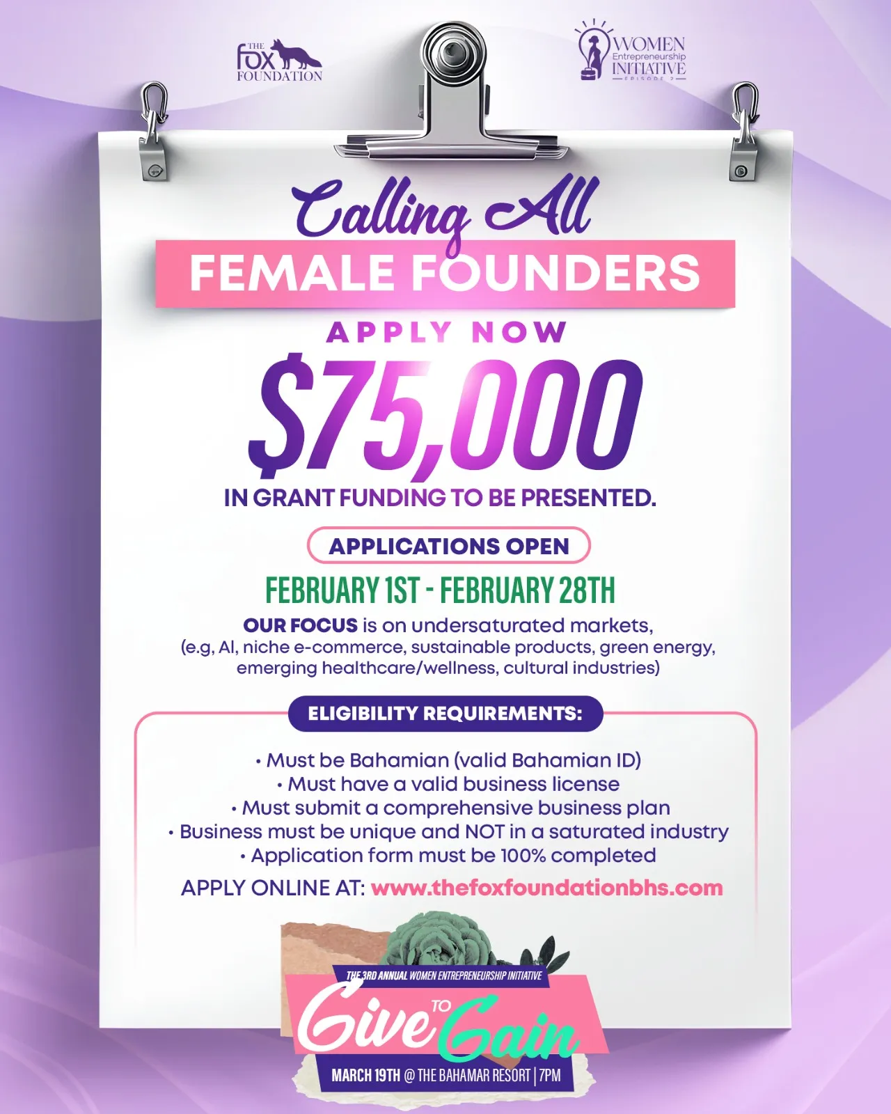 Are you a visionary female entrepreneur with a game-changing idea? The Women Entrepreneurship Episode Grant Initiative is back for its second year, offering $75,000 in funding to empower Bahamian women to break barriers and lead in undersaturated markets.